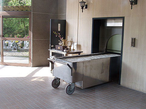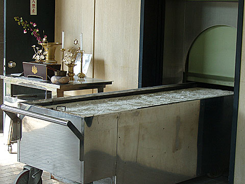 霊砂(白い砂)が敷かれているところを見ると、次の火葬の準備状態のようです。