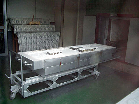 てんこ盛りの火葬台車、そして開けっ放しの炉扉で、訪れる者にトラウマを